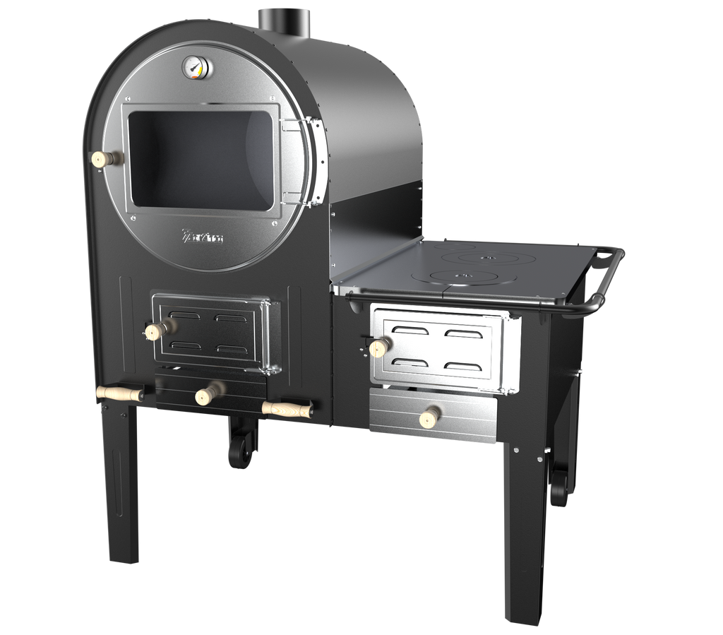 Nessa linha de fornos com fogão temos (Porta de Aço carbono, Porta de ferro Fundido e Porta de Inox) esse modelo foi desenvolvido para quem precisa de um forno maior, trazendo junto com ele um fogão e dando um aspecto de um ambiente mais aconchegante.